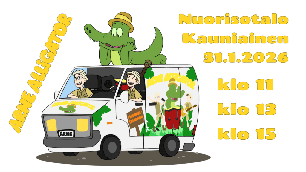 Talvirieha valtaa Kauniaisten Nuorisotalon ja sen pihapiirin lauantaina 31.1., tarjoten koko perheelle talven riemua, toimintaa ja hyvää mieltä. Aarne Alligaattori esiintyy Nuorisotalossa kolmella vauhdikkaalla kaksikielisellä keikalla (klo 11.00, 13.00 ja 15.00), ja pihalla riittää tekemistä poniratsastuksesta (klo 12-14) makkaran grillaukseen sekä VPK:n auton tutkimiseen.